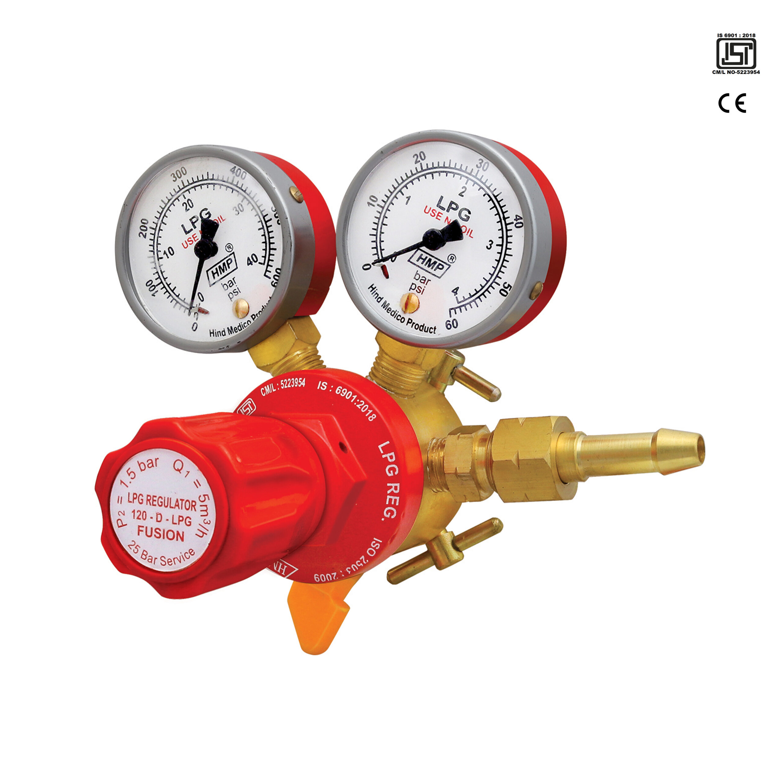 Single Stage Double Gauge LPG Pressure Regulator with in-built Adopter